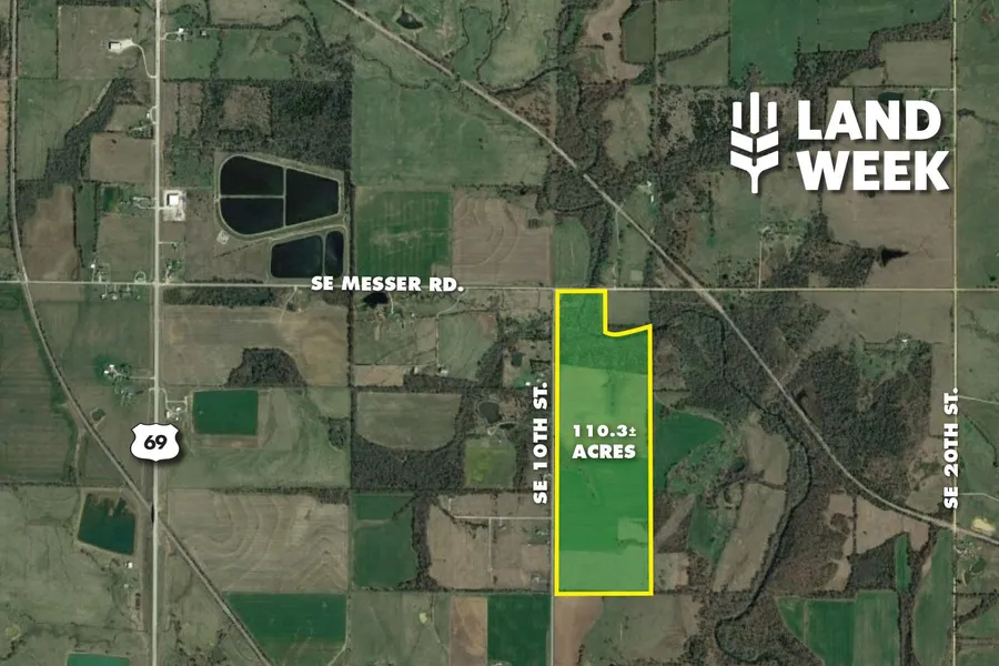 (Columbus, KS) South on 69 Highway, East on SE Messner Rd. Land is on the SE corner of Messner & SE 10th St.