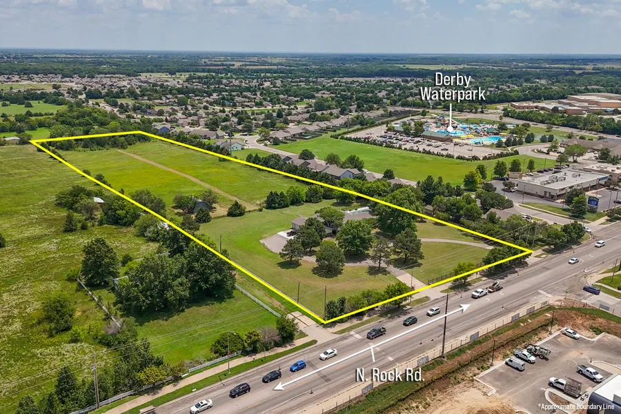 LOCATION LOCATION LOCATION!!!This seller relocation presents an exceptional opportunity to acquireprime property with significant potential for mixed-use redevelopment in the desirable city of Derby! This property is surrounded by substantial commercial development, including Dillons Marketplace, Target, Hobby Lobby, Chick-fil-A, and many more. The property is also nearRock River Rapids, Derby High School, Derby Public Library, and High Park.The 4-bedroom, 3-bathroom home sits on over nine acres with an in-ground pool, quonset, and pond!
