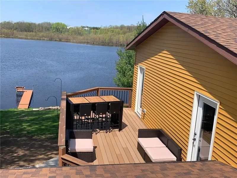 Beautiful Energy Efficient Lake Home with Patio overlooking Fish Lake. 3 bedrooms, 3 bathrooms, Stainless Steel Appliances in newly remodeled kitchen. Located on paved cul-de-sac. Entertaining on one of two decks, the patio, or the porch. Beautiful gently sloping lawn with beautiful trees, shrubs, flower gardens.