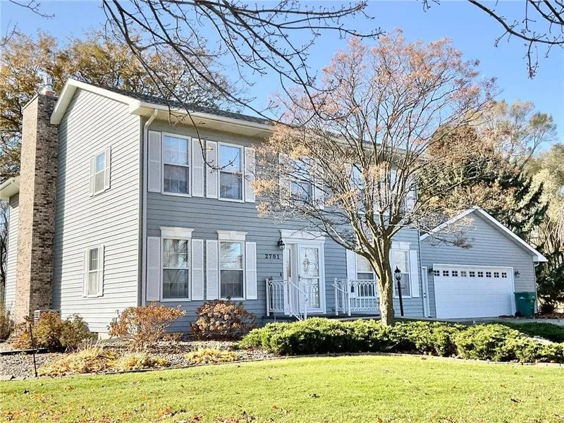 Gorgeous 1.25-acre city setting in quiet, secluded NW neighborhood is home to this fantastic 4BR 3-bath Colonial. Has stunning, spectacular main floor family/great room with gas fireplace, built ins and multiple windows with panoramic views of the lovely, tree lined park like lot and has a huge primary bedroom suite above it with all the same panoramic views. Relax and entertain with both formal and informal dining, comfortable living room, sunroom, main floor laundry and full unfinished poured concrete basement with stub ins for additional bathroom, finishable space galore and storage. Also features an attached, heated 4-stall garage, tiered composite deck, patio, steel siding, two forced air furnaces with central air and a 5-year old roof. Enjoy the lovely landscaping, garden areas, and mature trees of the lot. An additional 1-acre lot is also available.