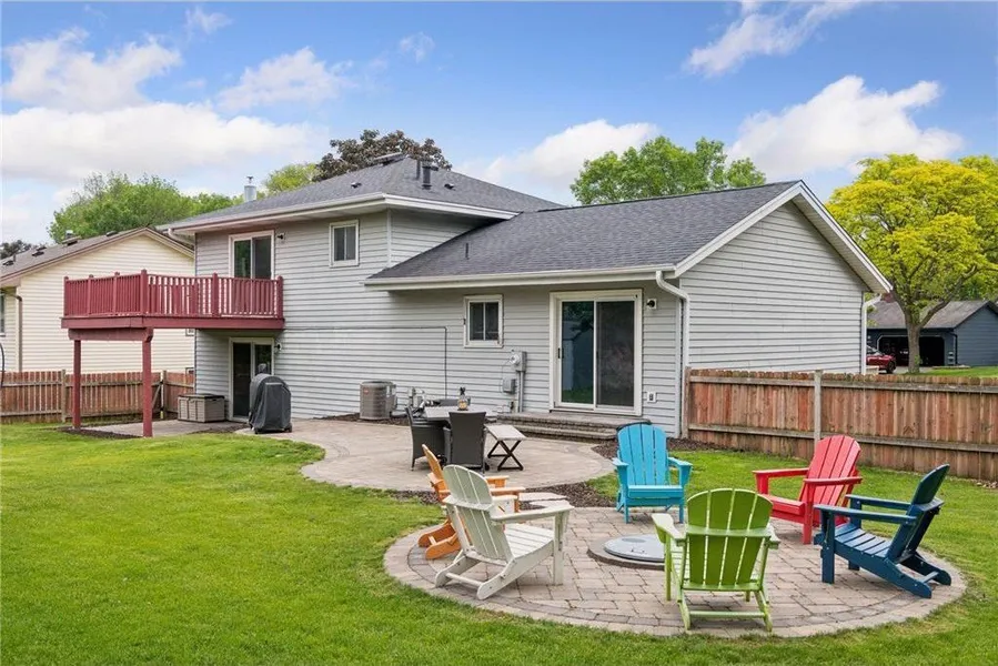 Don't miss this exceptional 3BR/3BA Brooklyn Park home with so many wonderful living spaces both inside and out! Enjoy nature from the home's front porch, the primary BR's private deck, or the back yard's upper and lower paver patios and fireplace patio. You'll love the vaulted open layout of the main level w/ gorgeous wood beams. Entire home features hard surface flooring, no carpet! Spacious kitchen features XL island, S/S appls, farmer's sink, and decorative tile backsplash and accent wall. Dining area opens to home's fully fenced yard. Primary BR suite features a private BA w/ new shower ('24) and large private deck. All 3 BRs on upper level. Second family room w/ French doors features a gas fireplace w/ surrounding built-ins and walks out to the yard. Lowest level is perfect for your home gym. Heated 2-car garage. Concrete driveway. Furnace & A/C-6yo. Newer roof. Newer washer/dryer. New storage shed w/ paver platform in 2021. Ultra convenient location - drive just around the corner to access 169 or 694. Enjoy all the nearby amenities of Plymouth, Maple Grove (Arbor Lakes!), & New Hope. Don't miss this gem!