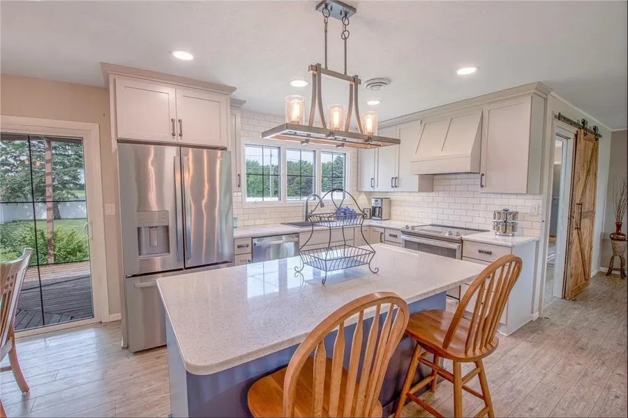 Come check out this charming, main-level living, tranquil retreat. The heart of this residence is a beautifully renovated kitchen that boasts modern white subway tiles and a sleek, airy aesthetic. The statement center island invites family gatherings and culinary creativity. Functionality meets style with a convenient main level laundry room, (no washer and dryer included) accented by elegant lighting and a sliding barn door, adding a touch of rustic sophistication. With 3 cozy bedrooms on the main level, there's plenty of space for everyone. Step outside to the fully fenced backyard, a private oasis complete with a newer privacy fence, ensuring peace of mind while children play or pets roam. The in-ground pool is an idyllic backdrop for memorable summer days, offering endless entertainment and relaxation. Resting on a spacious 1.2-acre lot, the large backyard offers abundant space for gardening, social events, and outdoor activities. The home also features a roof that's just 4 years old, adding to the turnkey appeal. The lower level holds immense potential and needs some TLC, ready for you to tailor to your needs, whether it's additional bedrooms, a home theater, or a workshop. With ample parking for two vehicles, this home is not only a haven of comfort but also a practical choice for daily living. Embrace the blend of modern amenities and serene living in this delightful family home, with some love and attention to details you can bring this home to life.