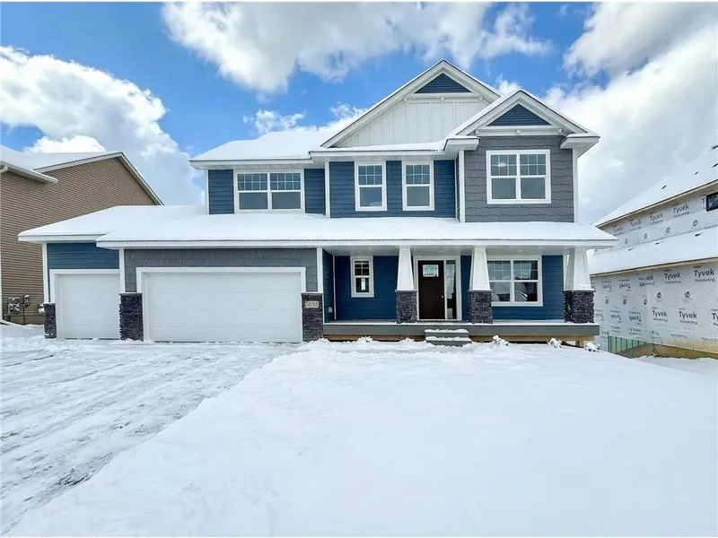 Welcome to the Jamestown two-story, perfectly situated on an incredible walkout lot! This spacious home features 5 bedrooms, 4 bathrooms, and over 3,260 sq. ft. of beautifully designed living space. Step inside to find a luxurious primary suite with dual walk-in closets and a private ¾ bath showcasing a custom tile shower and double vanity. The upper level offers convenient laundry, a versatile loft with media center/desk space, and four generously sized bedrooms. On the main floor, you’ll love the private office/den with French doors, cozy living room with a stone-front gas fireplace, and a gourmet kitchen complete with granite countertops, a double oven, oversized island with breakfast bar, corner pantry, and hardwood/tile finishes throughout. Thoughtful details include knockdown ceilings, solid 3-panel doors, and custom niches. The finished lower level provides the perfect space for entertaining with a large family room, additional bedroom, and full bath. A spacious 3-stall garage completes this dream home. The home is located in one of the top-rated school districts in Minnesota, Lakeville offers a perfect blend of suburban comfort and city convenience. Enjoy easy access to beautiful parks, walking trails, and nearby lakes for outdoor recreation. The area boasts fantastic restaurants, shopping, and entertainment options, all within minutes of your front door. Don’t just imagine your dream home—design it with us today! We have many homesites, floor plans, and communities to choose from. Schedule your private tour and design consultation now!
