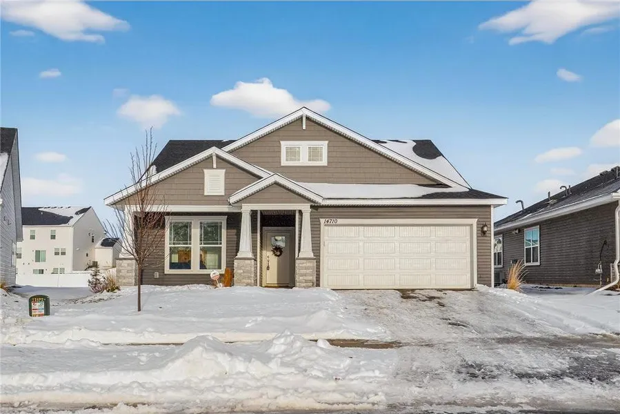 Located in the Villas at Rush Hollow neighborhood of Maple Grove, this association-maintained single-family home offers the look and feel of new construction with the added value of upgrades already completed. Built in 2024 by David Weekley Homes and only lived in for one year, this home will appeal to buyers considering brand-new builds in the neighborhood, while offering a move-in-ready option without the extra cost or wait. The 1.5- story layout offers true main-level living