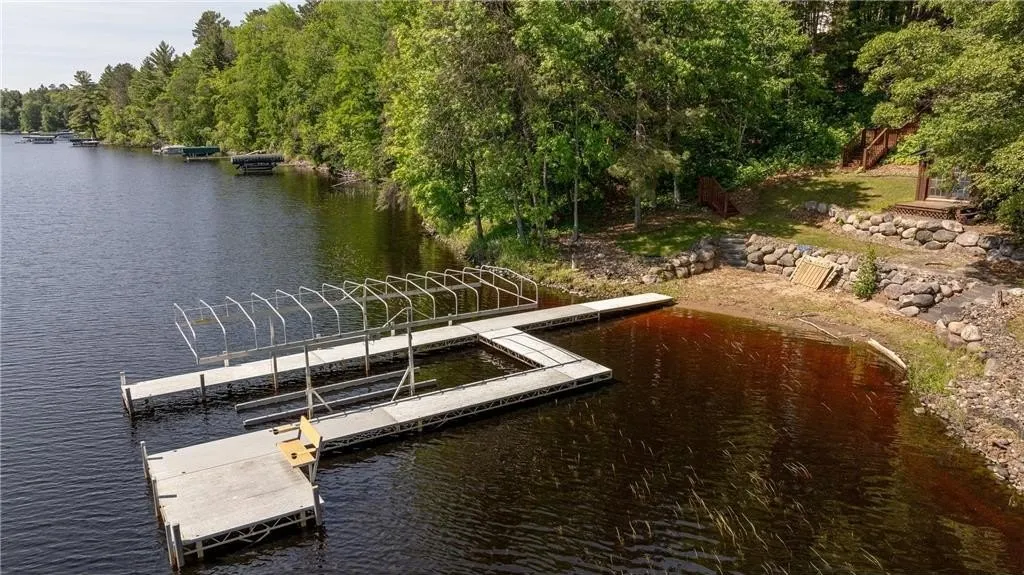 Approximately 5,000 sq ft year round home on Billhorn Bay, Big Sandy Lake. 4 Bedrooms plus Loft for added guests. Very luxurious Home with Gourmet kitchen and large deck lakeside for entertaining. 42 x 40 Family room lower level walkout., Comes completely furnished, all furniture all levels, all appliances, wall decor, pool table with high top chairs, & bubble hockey game. Bedroom & 3/4 bath. Main level has 3 bedrooms 2 full baths & large vault ceilings with gas burning stone fireplace. Garage with entertaining area with stainless appliance & shelfing. 150 ft sand shoreline with steps and tram to lots of level area. Boathouse & Bunkhouse at shore.. A Must See Property!