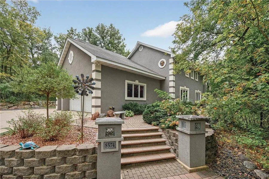 Welcome to your next dream home! Situated on 3.34 wooded acres in Shakopee, this home combines natural beauty, great design, and distinctive style. A paver sidewalk and guest parking area welcome you and your visitors, setting the tone for the custom details you’ll find throughout. Inside, over 4,500 finished square feet showcase a home rich in character and warmth—not your typical cookie-cutter design. The open floor plan centers around a vaulted living room with fireplace and floor-to-ceiling windows that face gorgeous, mature trees. In the 4-season porch you’ll find another fireplace and vaulted ceiling, making this the perfect spot to spend an afternoon reading. It also has the convenience of stepping directly out to the patio, blending indoor and outdoor living.