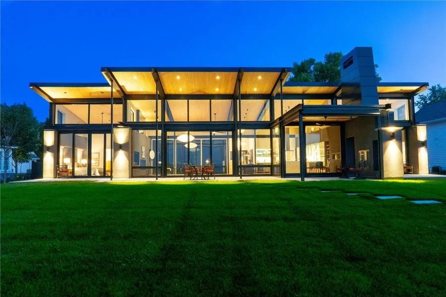 Attention to detail is evident throughout the home, with refined materials such as concrete, stucco, and steel alongside high-efficiency systems, including a tankless water heater and smart home technology. An oversized heated two-car garage and a functional mudroom with laundry facilities enhance practicality.