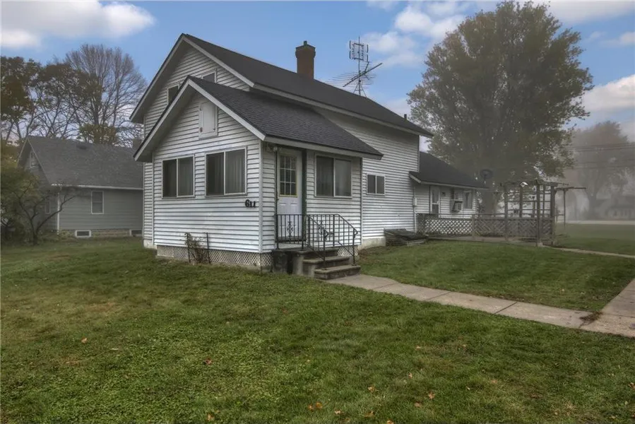 Classic 1½-story home with solid structure, character, and practical living space. The main floor includes a comfortable living area, office, bath/laundry, and a spacious kitchen with custom cabinetry, built-ins, and plenty of counter space. Upstairs offers two bedrooms, another bath, and a roomy landing area. The lower level provides useful storage and utility space.