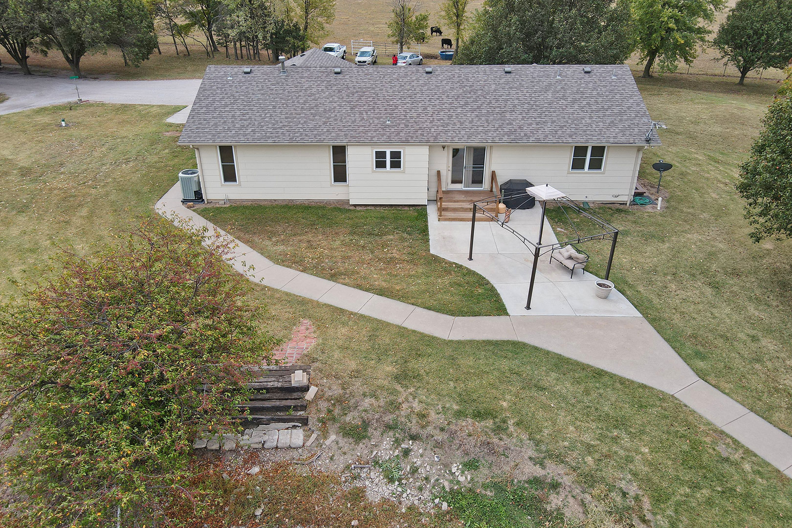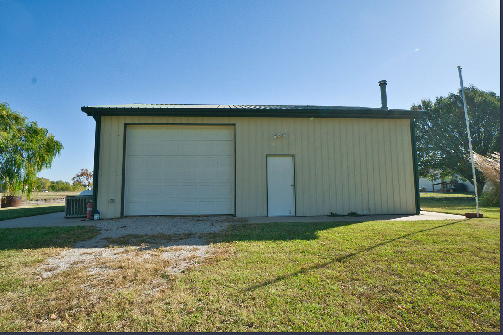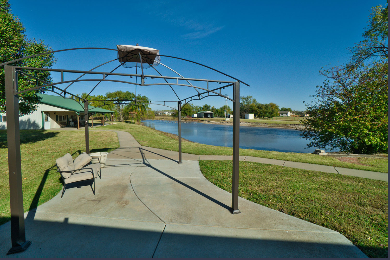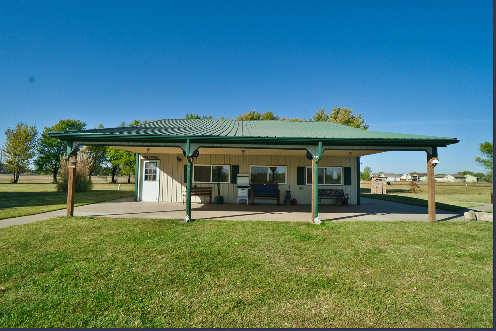 Incredible 20 +/- acre tract just outside of Wichita city limits, just east of West Street right on 47th Street. This wooded acreage has a private pond and serveral outbuildings including an impressive 36 x 30 steel building with a 36 x 15 covered patio overlooking the pond and windmill. This building is insulated with central heat and air with its own propane tank, and a small kitchen set up, providing the potential for additional living quarters. The property is set up for horses and cows with pipe fenced corals and additional sheds for up to 6 stalls. The exterior of the home features a covered entry, attached 2-car heated garage, sidewalks, and a large patio area viewing towards the pond, perfect for entertaining.