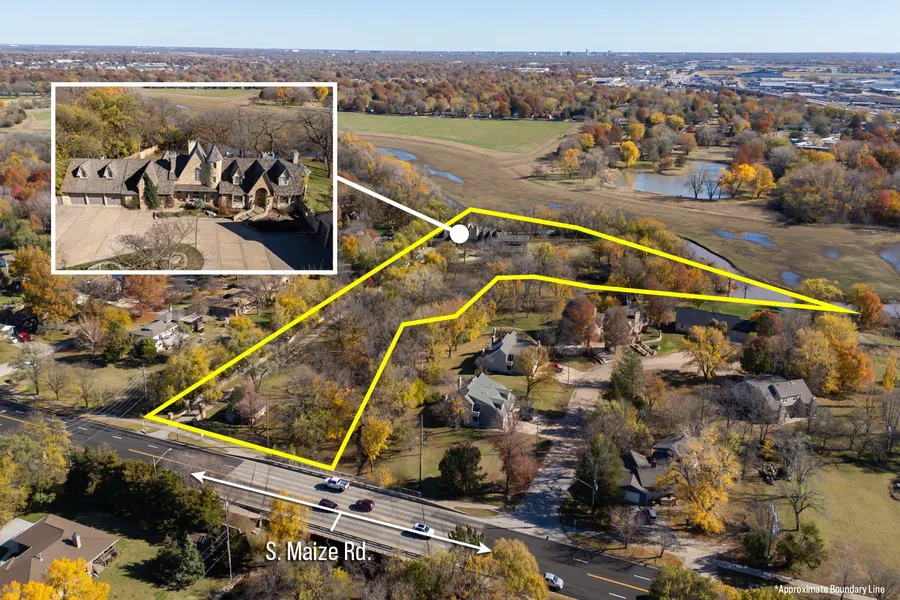 Nestled in a prime west-side location, this extraordinary estate combines privacy, elegance, and modern luxury. Accessible via a private gated drive, this property backs up to Cowskin Creek, surrounded by mature trees and fencing, ensuring complete seclusion. Goddard School District!