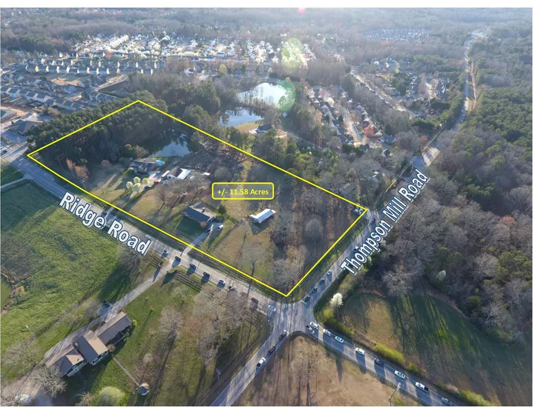 The property is located at the intersection of Ridge Road and Thompson Mill Road. This area
