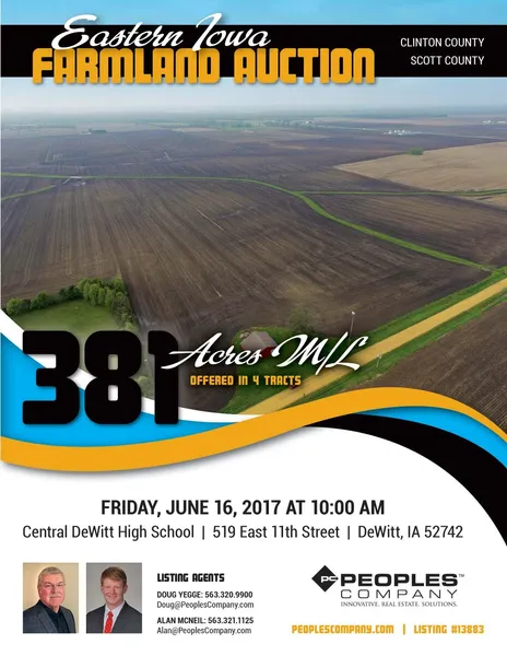 Farm Program Information: Farm Program Information is provided by the Clinton and Scott County Farm Service Agencies. The figures stated in the marketing material are the best estimates of the Seller and Peoples Company; however, Farm Program Information, base acres, tillable acres, etc. are subject to change when the farms are reconstituted by the Clinton and Scott County Farm Service Agencies.