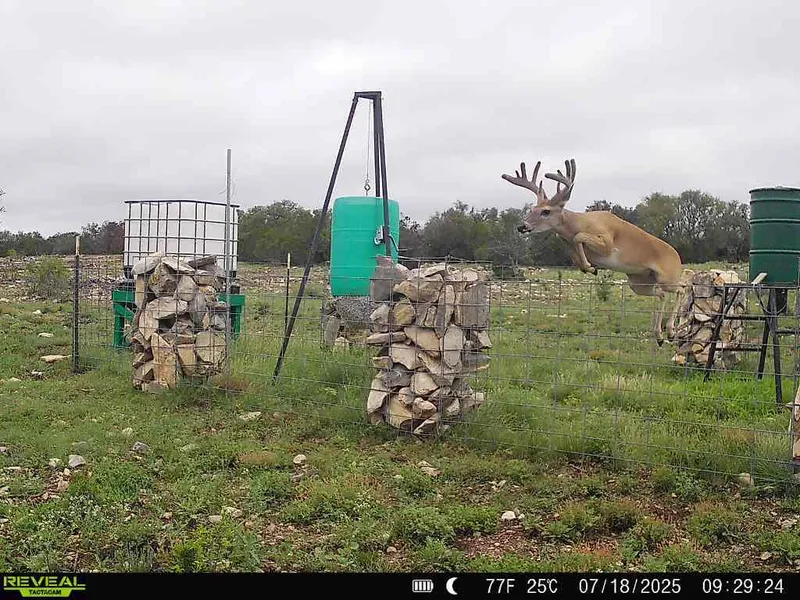 Large dry seasonal creek cutting across the front side of the property with small bluffs and outcroppings allowing for a constant corridor for the variety of wildlife to roam back and forth