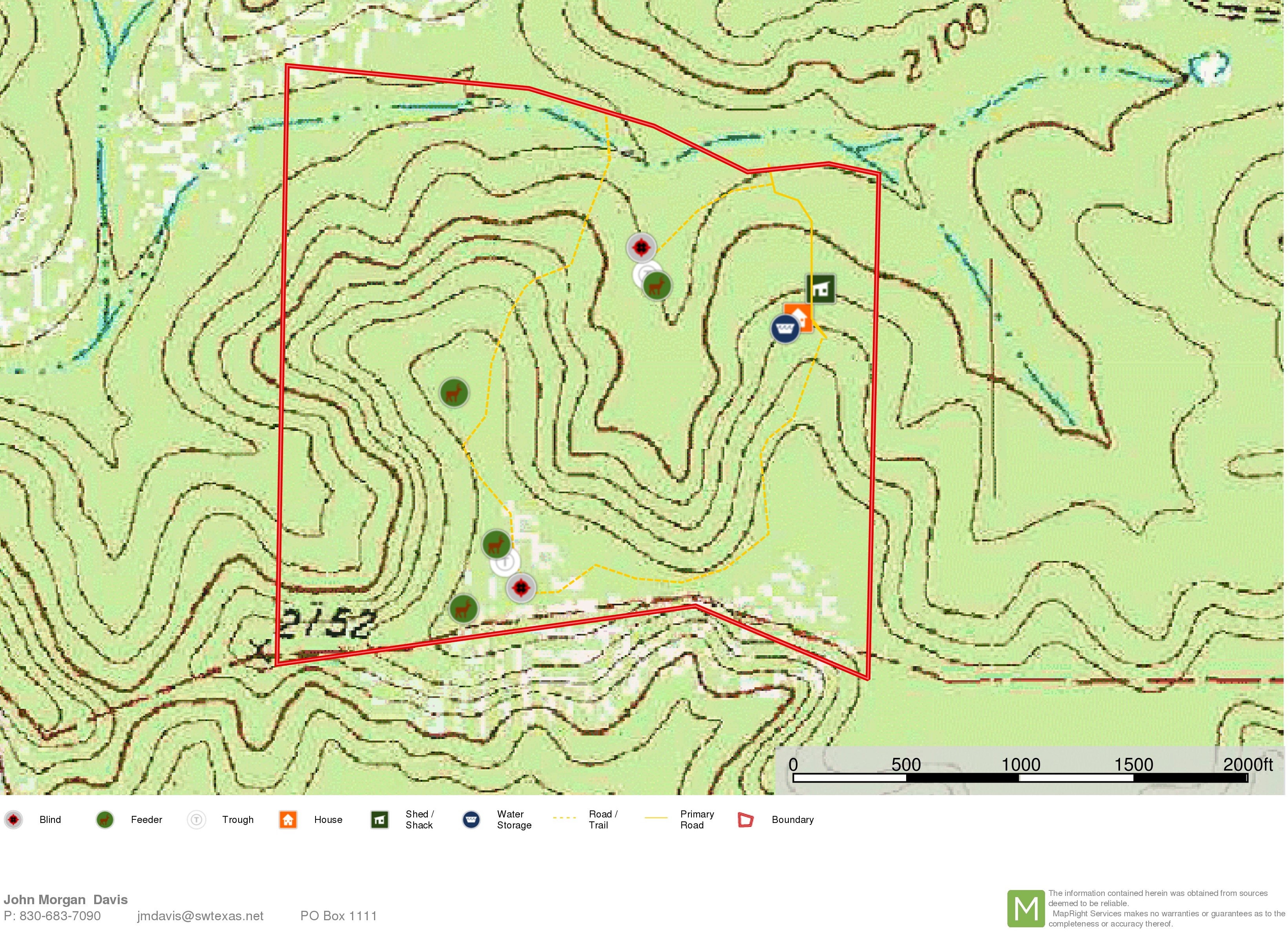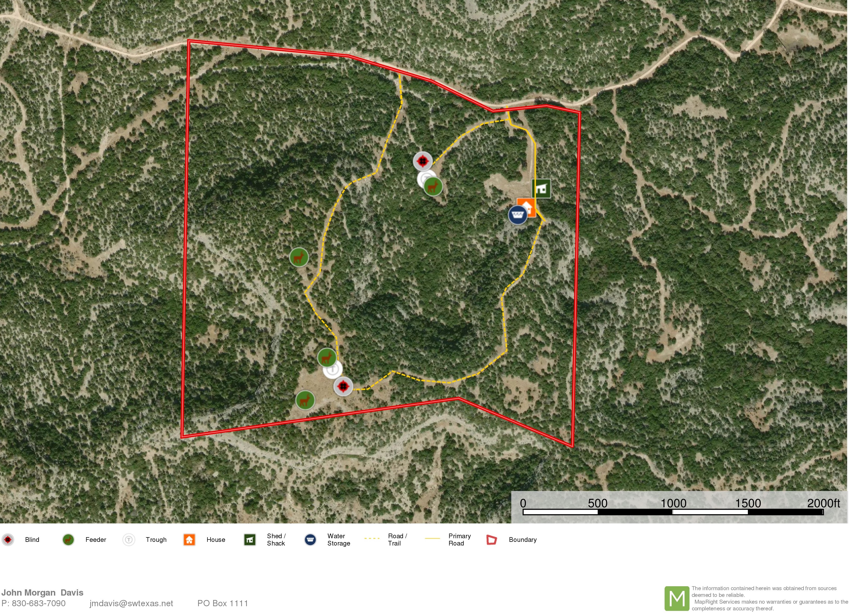 2 blinds, 3 spincast feeders, 2 1500lb protein feeders, 2 watering troughs