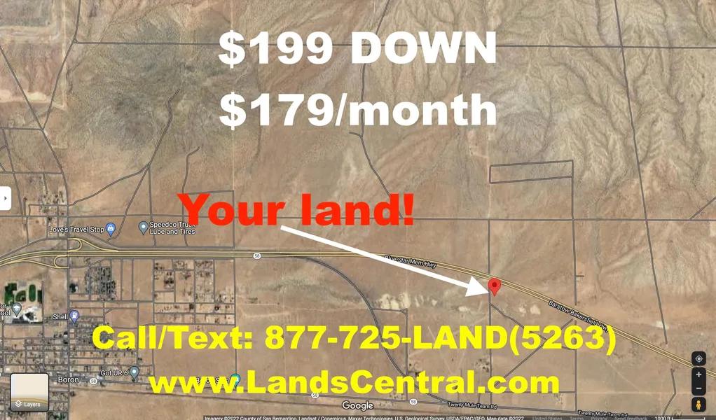 You can type these coordinates in Google Maps to find the land: 35.00653805036, -117.6055013689