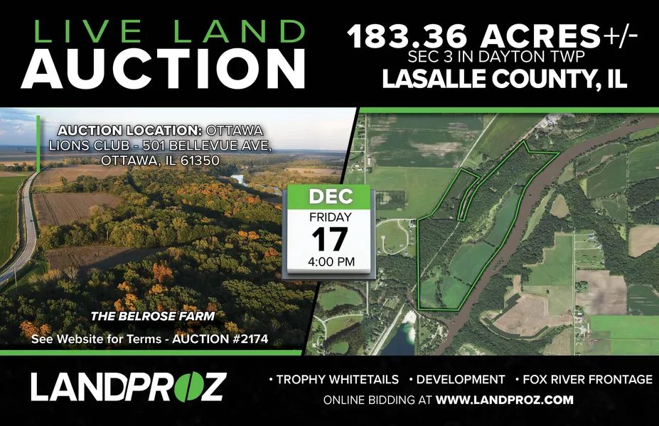 LandProz is proud to offer this rare 183.36 +/- acres in La Salle County, IL at auction. This parcel will be offered in one single parcel. Land of this quality and potential are rare to hit the market in this area. This farm has been in the same family since the mid 1800s; over the last 4 generations.