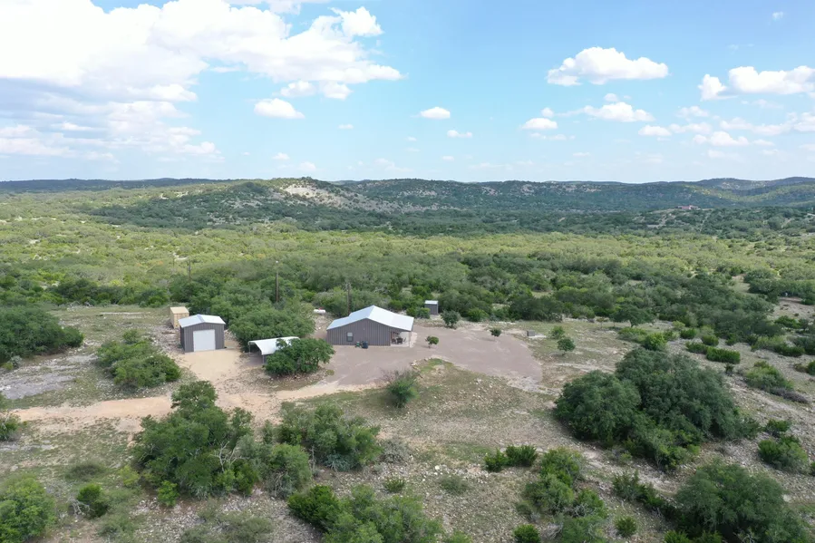 There is a 700 sq ft barn with washer and dryer and additional appliances, Carport for parking, 20 ft Connex for storage