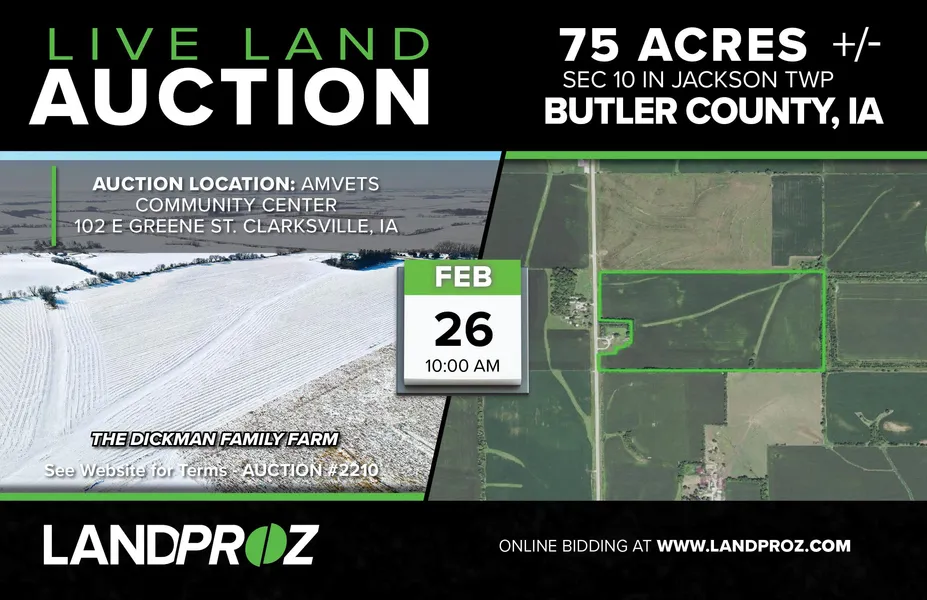 This very productive 75.35 +/- acre Dickman Family Farm will make a great addition to your farming operation or an excellent investment for your family's future.