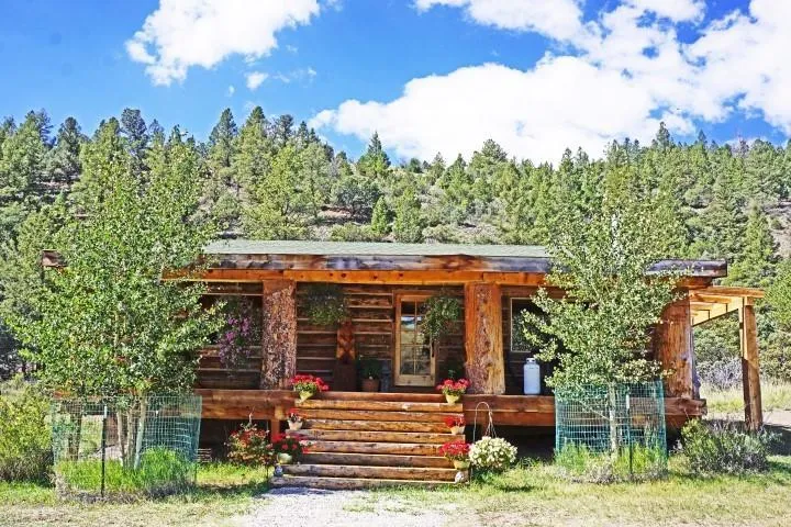 This gorgeous cabin has 2 bedrooms and 2 baths. There is propane forced air heating, and the living area has a cozy wood stove. Tile, carpet, and vinyl flooring. The kitchen is almost finished. There is a domestic well and a septic system. Take time to sit on the porch and admire the view. This property also includes a 16x80 manufactured home, a work shop, barn, and a well h...
