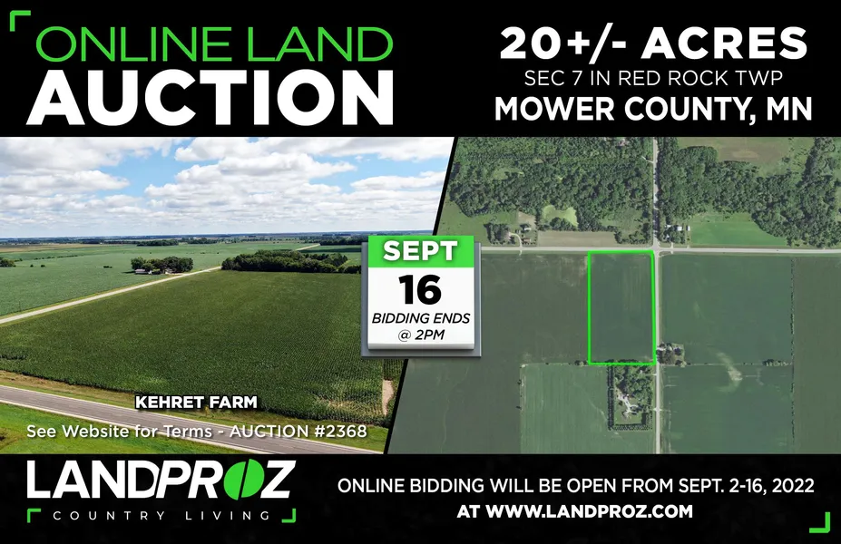 Don't miss your chance to own this 19.87 +/- acre piece of tillable land in the heart of Mower County, MN. Lying on the corner of 2 paved roads, off 570th Ave and 270th Street [County Road 2] just west of Brownsdale, with a good CPI of 84.2. Rent year to year ends/renews Jan 1, 2023.