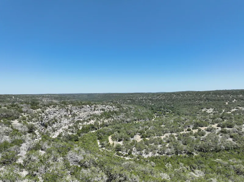 Several seasonal creek beds wind through the valleys, lined with mature oak trees that provide shade and natural beauty. Towering bluffs with natural rock outcroppings and caves offer breathtaking 360-degree views that stretch for miles, making this property truly one-of-a-kind. Improvements include a mobile home with electricity and a private water well, providing a comfortable base camp for weekend getaways or extended stays.