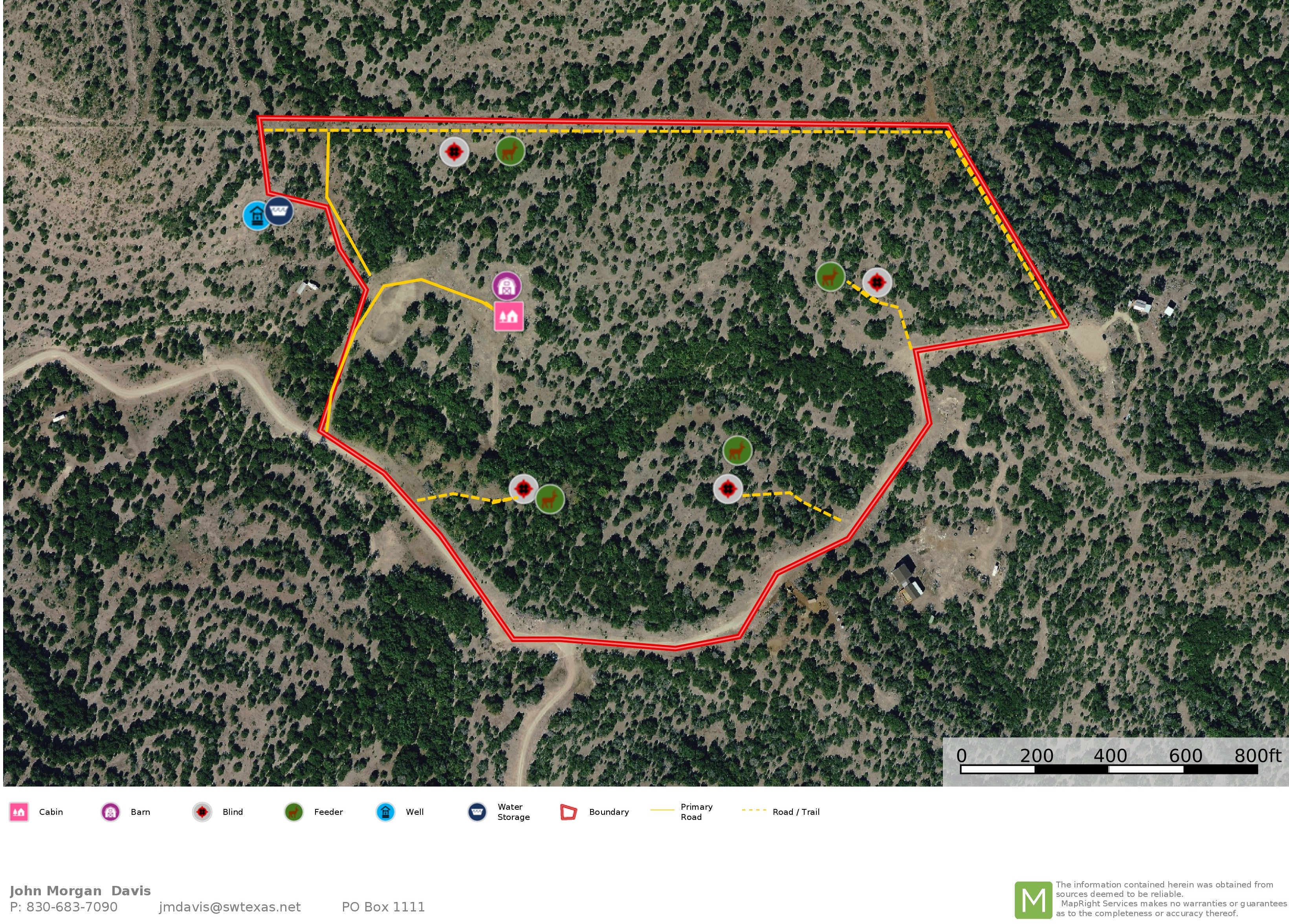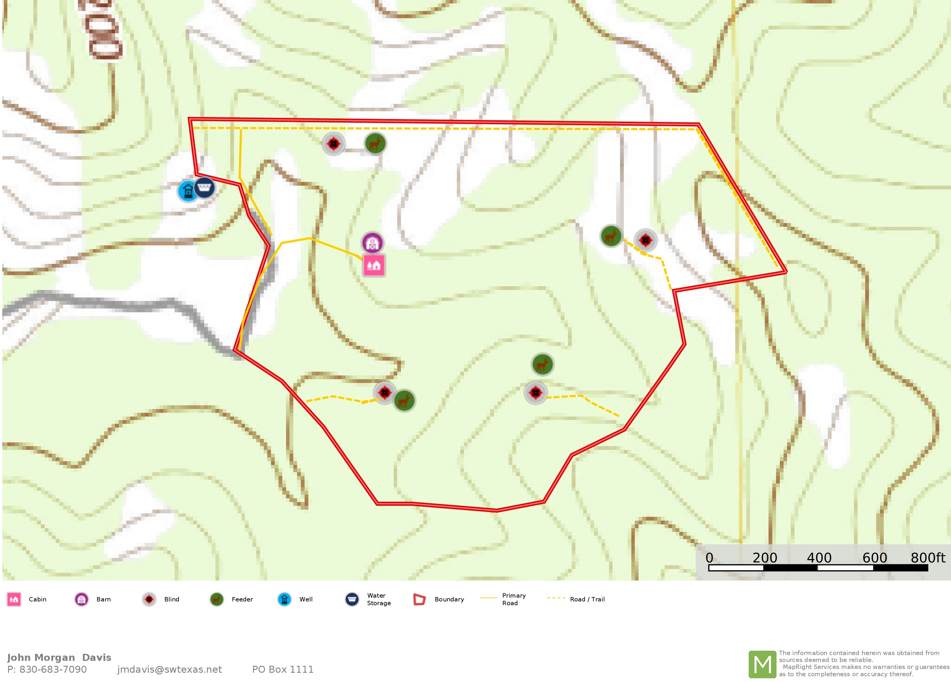 Well defined boundaries, good trail system allowing for access to all parts of the property and leading to 3 corn feeders, 1 protein feeder, 3 box stands, and 4 bow stands