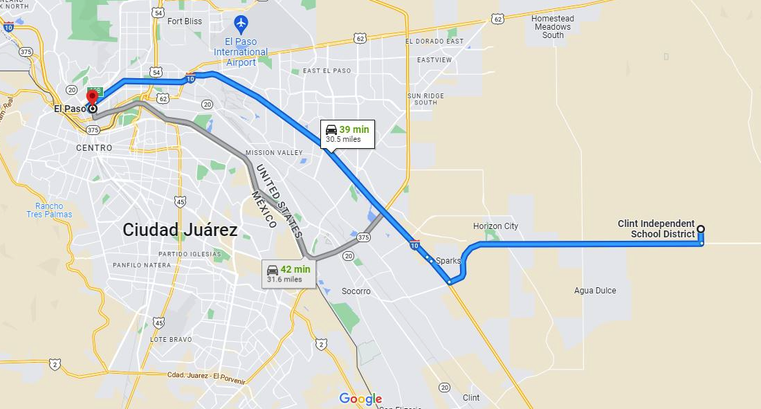 Closest Small Town: Clint, Texas 79836 (27 min (16.0 miles)