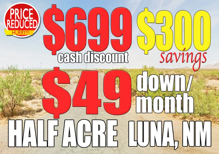 $300 OFF!! Cheap Half-Acre Land for Your Mobile Home for Only $49 Down/Month in Luna, NM!