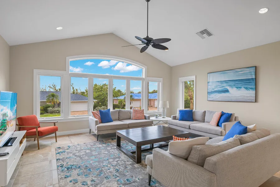 An exceptional opportunity to own a fully intact and updated home on Sanibel Island. Recent post-hurricane improvements include a new roof, Hardie board siding, gutters and soffits, lanai shutter, exterior paint, fresh sod, pool equipment, pool fencing and resurfaced pool deck. Additional upgrades completed in 2022 feature a remodeled primary bath, new bedroom carpeting, an updated irrigation system, and various plumbing and electrical enhancements. The home offers serene views of the pool, backyard and conservation area, creating a private and tranquil atmosphere. The spacious kitchen boasts granite countertops, custom wood cabinetry with soft-close drawers, stainless hardware and appliances. Two bedrooms include en-suite baths, while the expansive lower level and garage provide ample storage or flexible use options. The Dunes community offers golf, tennis and a range of social activiti...