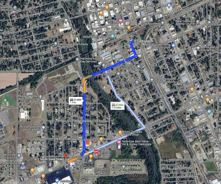 Research Parcel InformationDirections from 4th St/Dr M.L.K. Jr. Blvd in Clarksdale, MS: Travel south 0.3 miles and turn left onto Riverside Avenue. Travel 207 feet and continue straight onto Madison Avenue. Drive 0.4 miles and turn right onto S State Street. The destination will be on the right in 0.1 miles.