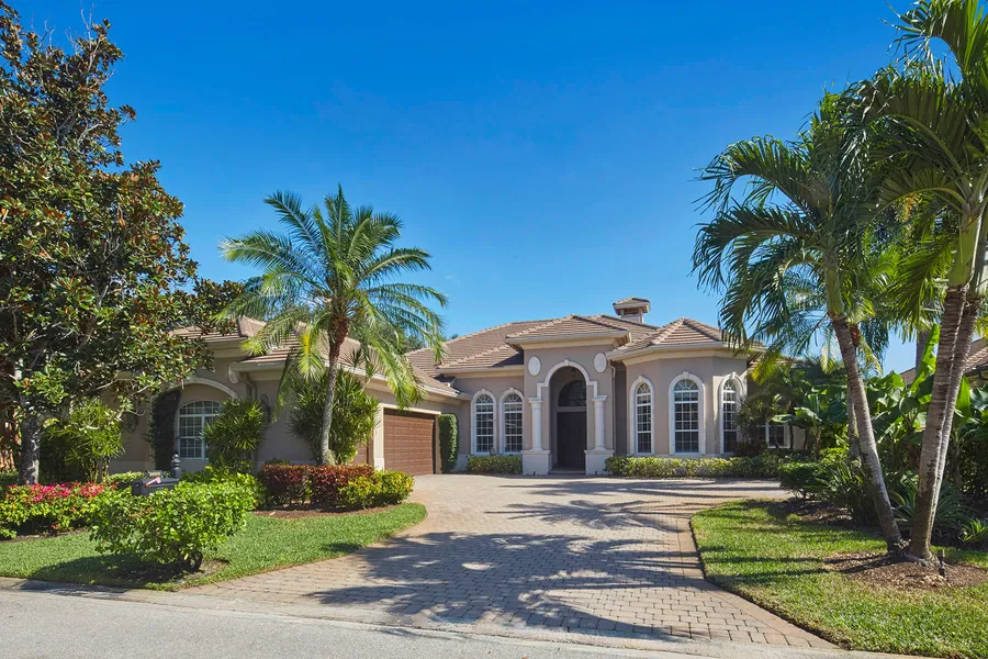 Offered for the first time since being custom built, this four-bedroom plus den lakefront property is located on a beautifully landscaped oversized corner lot. Great curb appeal with newer flat tile roof, on a quiet cul-de-sac in the estates section of Hammock Isles in the Vineyards. The spacious floor plan features volume and tray ceilings, crown moldings, two fireplaces, pocketing sliding doors, plantation shutters, 8-foot interior doors and many other upgrades throughout. The primary bedroom offers a fireplace with lanai and pool access through either a set of French doors or from his bath with a convenient shower. Her huge bath has both tub and shower, and each bath has a customized walk-in closet. Two additional bedrooms with a Jack-and-Jill shared bath between with dual sinks, plus an additional private, expanded en-suite bedroom also with lanai and pool access. The den has custom shelving and a large bay window with convenient access to a powder room. The oversized paver screened lanai has covered and sunny areas for lounging, a beautiful outdoor kitchen and a saltwater heated pool with a spa and fountain. The large three-car garage measures 24-by-36 feet, has a window, service door and double wide storage closet. This is a great opportunity to make this beautiful custom home your own!
