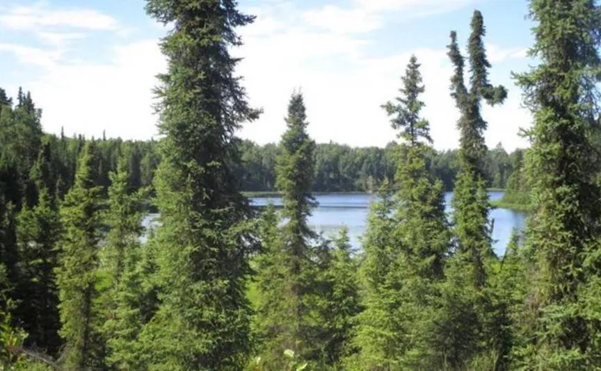 Not a dense forest having Spruce Pine, Poplar, and Aspen.
