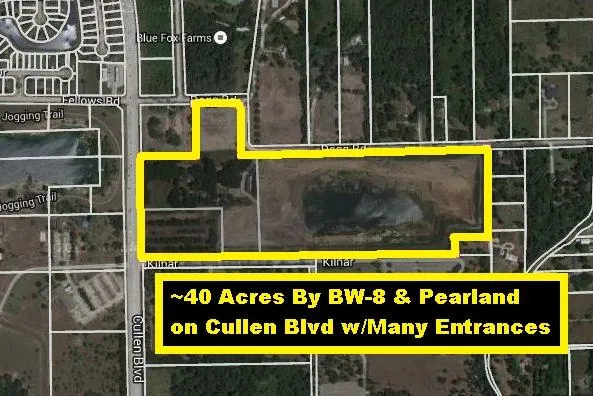 High Desired Location just North of Pearland! ~40 Acres w/Lake on Cullen Blvd By BW-8 & Pearland. Multiple Entrances from Cullen Blvd, Dagg Rd & Dagg Cemetery Rd/Mary Kay Ln. Property has Completely Renovated Main Home & 3 Rental Homes. Sand has been excavated from the back 20 acres, which is now a Man-Made Lake! Property is adjacent to Christa V Adiar Park. Can Be Commercial, Multifamily or Residential. Perfect for Lakefront Apartments & Townhomes. Minutes to TX-288, Sam Houston Tollway/Beltway-8, Dawes High School & Country Place Golf Course Community. Located Across from Tom Bass Regional Park III. Can Be Subdivided.