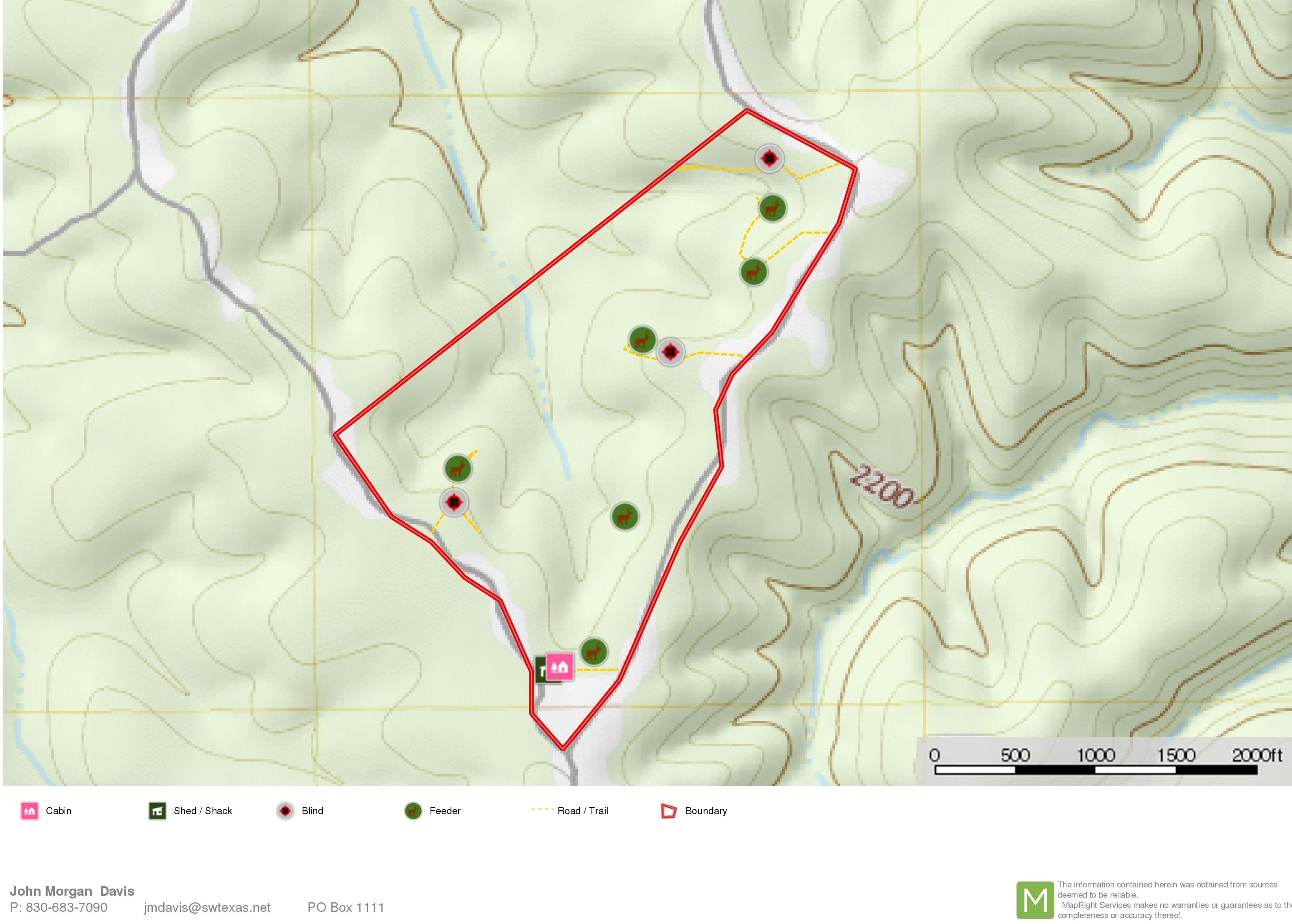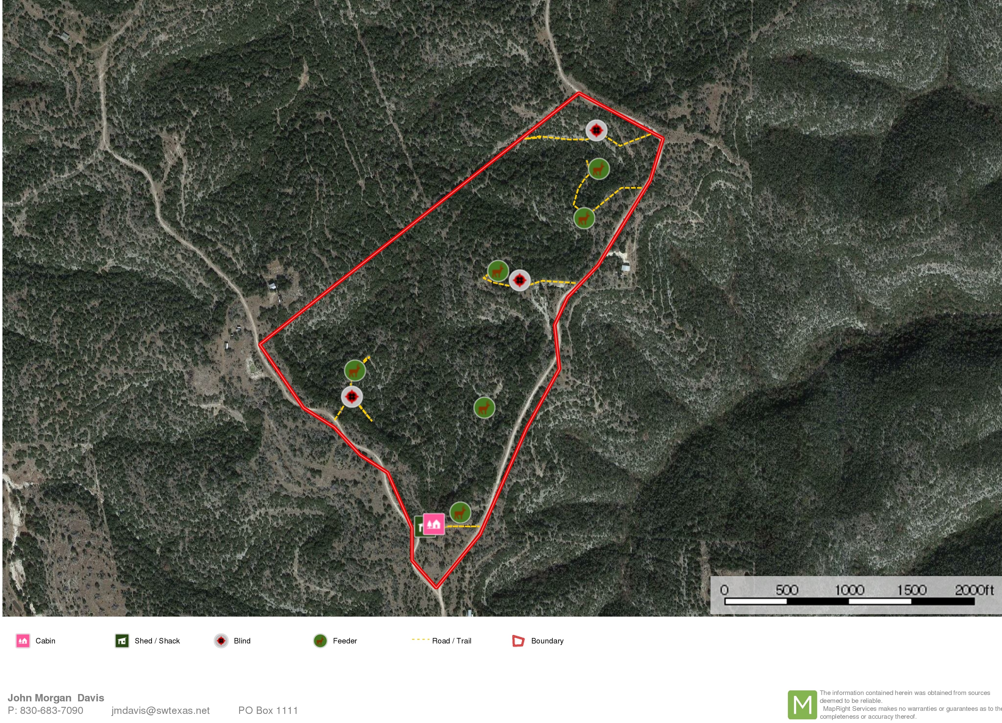 Good trail system leading to 6 spincast feeders, 1 protein feeder, and 2 deer stands