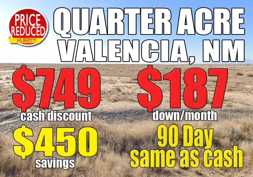 $450 Off, 90 Day Same as Cash! 0.25 Acre in Valencia, NM!