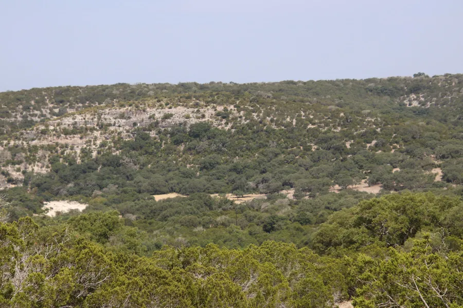 Typical hill country terrain has deep thick canyons with a wide variety of species of oak trees to hilltops that offer 30 mile picturesque views along with seasonal wet weather creeks offering travel routes for the wildlife