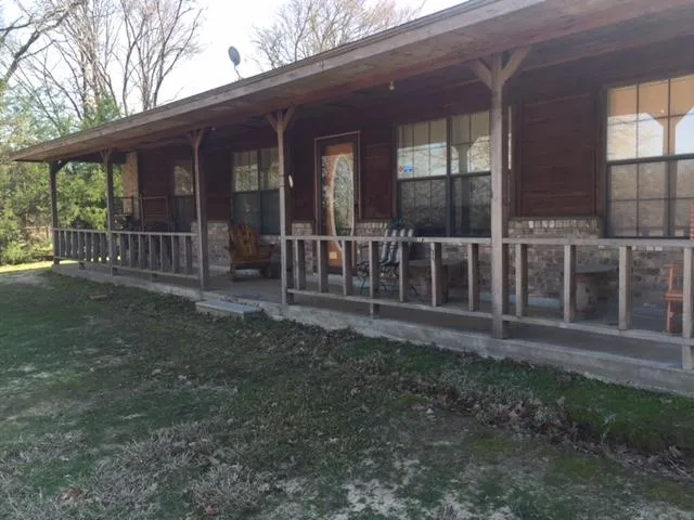 *Property Description: On a majestic hill dotted with huge Oak trees, you'll find this lovely brick home on 10+ acres. The front porch extends the length of the house--wonderful for enjoying quiet evenings. The kitchen is open to the dining area with bay window, and the washer/dryer connections are convenient to this area in a large utility closet. Built in bookshelves flank the wood burning brick fireplace in the living room which has two ceiling fans and carpeting. A relaxing ...