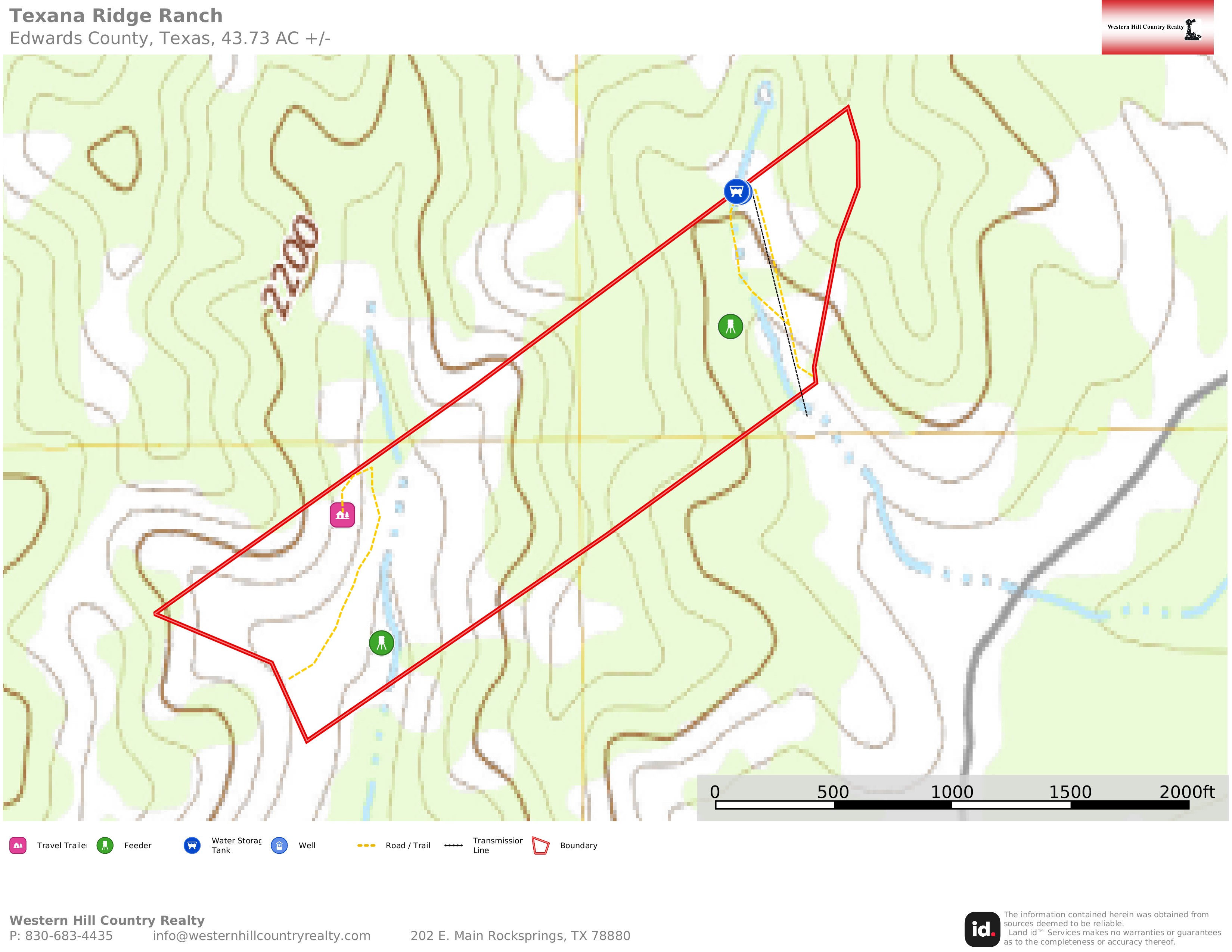 Texana Ridge encompasses +/-43.73 acres in the heart of central Edwards County, Texas, offering both natural beauty and excellent hunting opportunities. Located less than 25 minutes from Rocksprings, the property enjoys good access while still maintaining a private, near end-of-the-road setting. The land features rolling terrain with dry creeks running along each side of the central ridge, creating a scenic landscape that rises to hilltops boasting impressive 30-mile views. Well-maintained access roads lead to both the north and south sides of the property, making it easy to navigate and enjoy every corner.
