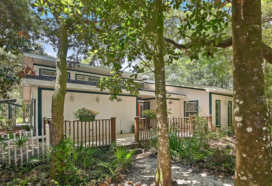 Step into your own enchanting forest on this stunning 1.71 acre estate across the street from the Choctawhatchee Bay. The property is covered in beautiful trees, with the show-stopping live oak estimated to be over 200 years old at your front entrance. Tucked away on a dead end, private road, Eden Bay Estates offers a peaceful bayside lifestyle, where nature and wildlife are abundant. Spanning almost 2 acres and two corners, there are three separately platted lots being offered for sale together. An existing mid-century modern home offers 3 bedrooms and 2.5 baths in the main home, with an additional bedroom and bath over the 2 car garage.