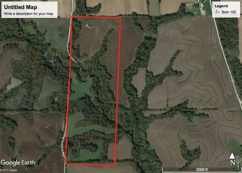 Currently, there are 38 acres planted in soybeans for good income and also makes a great food source for the wildlife. There's also 22 acres of grass spread throughout the farm that is currently being used for hay but has been tilled in the past for more crops and income for a total possibility of 60 tillable acres. The remaining 60 acres is made up of thick, mature timber with a variety of species of trees that will provide good cover for the wildlife and could be logged for additional income. There are numerous concealed areas throughout the farm that are begging for food plots and great tree stand locations. Brush creek meanders through the property and has good water all year long.