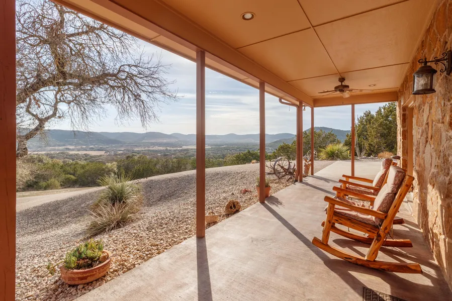 "Truly Classic" TX Hill Country 2515+/-sqft homestead, 3 bdrm-2 ba w/bonus rm-4th bdrm/office w/ba above 2 car garage on 22.06+/-Ac. Breathtaking views, Xeriscape landscaping, greenhouse, 30'X40' workshop with utility sink (cold water only) and a urinal, chip & seal driveway, fenced & 2 automatic gates. The home has high ceilings, granite counter tops, alder wood custom cabinets, Thermador 6 burner cooktop, tile floors, double sided fireplace, views from the french doors leading out to the covered front porch, Fiber/HS internet, WL exempt, exotics & hunting allowed. This is the perfect get-a-away or homestead to enjoy the Texas Hill Country!