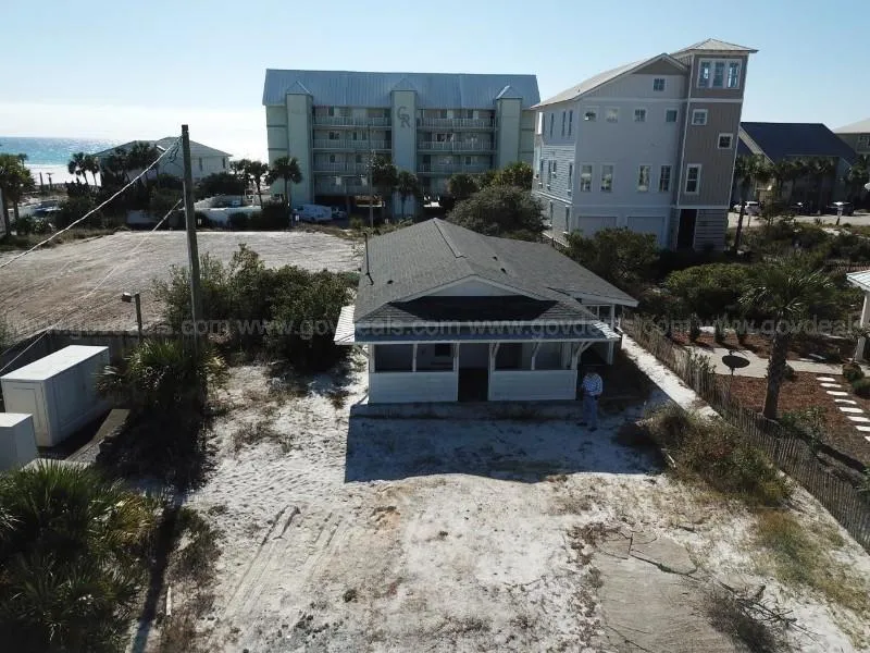 392 Eastern Lake, Santa Rosa Beach, FL 32459. Single-family building featuring 1 bedroom, 1 bathroom, 1,323 sq. ft. total area, and 600 sq. ft. of living space. Sale to include building, all fixtures and equipment to be removed in its entirety except for the monolithic concrete slab foundation.