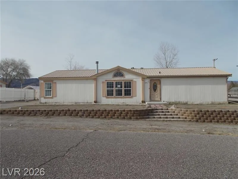 Spacious double-wide manufactured home offering the comfort and space ideal for rural desert living on a corner lot. An open living room welcomes you upon entry, flowing into a cozy dining area perfect for everyday meals. The kitchen features oak stained cabinetry and black appliances, including a range, micro-hood vent, and dishwasher, with a conveniently located laundry room nearby. The primary bedroom is thoughtfully separated from the other bedrooms, creating a private retreat with a bathroom that includes double sinks, a separate tub and shower, and a walk-in closet. Outside, enjoy wide-open desert skies from the covered patio, a large open backyard with plenty of room for outdoor living, and additional storage with a rear storage room. A 2-car detached garage provides ample space for vehicles, tools, or recreational equipment—ideal for embracing the quiet, open lifestyle this property offers.