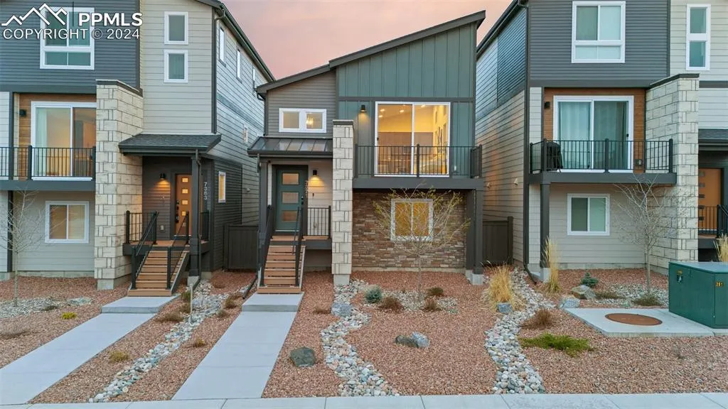 Welcome to your vibrant and contemporary oasis nestled near the heart of District 49 schools, bustling Powers Corridor shopping centers, and the strategic proximity to Peterson and Schriever Space Force Bases. This sleek residence boasts 1,302 square feet of modern living space exuding elegance and functionality at every turn. As you step inside, you're greeted by an open-concept layout adorned with large picture windows that flood the space with natural light, accentuating the expansive vaulted ceilings and creating an airy ambiance that's perfect for both relaxation and entertainment. The thoughtfully designed kitchen is a culinary enthusiast's dream, featuring under-mount cabinet lighting, luxurious granite countertops, a gas range stove, and stainless steel appliances that effortlessly blend style with practicality. Unwind in the comfort of two spacious bedrooms, including a primary suite that indulges you with the luxury of a double vanity, a separate walk-in closet, and an abundance of space to rejuvenate after a long day. Step outside onto the composite deck, where you can bask in the Colorado sunshine and enjoy al fresco dining while taking in the meticulously landscaped surroundings that provide a serene backdrop to your daily life. Convenience meets comfort with the attached, insulated two-car garage, offering ample storage space for all your outdoor gear and vehicles. For the four-legged members of your family, a nearby dog park provides the perfect opportunity for play and exercise, ensuring that every member of the household feels right at home. Don't miss the chance to make this contemporary haven yours, where every detail has been carefully curated to elevate your living experience to new heights.