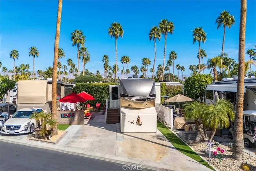 Beautifully upgraded east-facing lot on desirable Ficus Drive with unobstructed views of the San Jacinto Mountains in the guard-gated Outdoor Resorts Palm Springs Community. This turnkey outdoor living space features vinyl fencing, custom downlighting, a front privacy wall, low-maintenance astro turf, and expanded concrete in the rear maximizing patio and entertaining areas. Included in the sale are all outdoor patio furniture, area rugs, storage box, a 2012 Redwood Fifth Wheel M-36RL with lots of natural light, front doghouse, and custom stairs with wood railing. A short walk to the dog park, Satellites D and E and the El Saguaro Club House with Pickleball Courts and Owners Lounge. Lot 650 is on the west side of the resort in the highly sought-after neighborhood locals call WEHO. Outdoor Resorts Palm Springs spans 137 beautifully landscaped acres and offers an unmatched resort lifestyle with 27 holes of executive golf, 10 tennis courts, 13 pickleball courts, 8 swimming pools, a fully equipped fitness center, sports bar (19th Hole), on-site salon/barber shop, caf , and two clubhouses with year-round activities, events, and entertainment. Whether you re seeking an active social scene or a peaceful desert retreat, this is more than a lot it s a lifestyle.