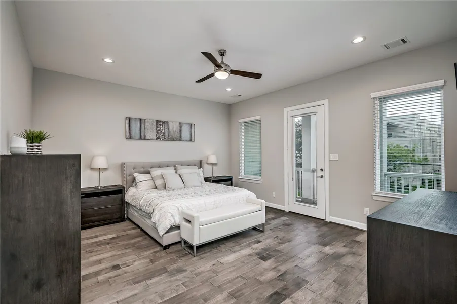 Immaculate 4 bed/3.5 bath in vibrant Sawyer Heights/First Ward Arts district features first floor living, Study, Game Room & engineered wood floors throughout (NO CARPET!). Enjoy the outdoors in the turfed and fenced backyard space with covered porch & 2nd floor covered balcony. Primary Bedroom, 2 Secondary Bedrooms, Study & Laundry on 2nd floor. Third floor has Game Room, 4th Bedroom & Full Bath making it flexible to also use as In-Law Suite or for Live-In Nanny, etc. Kitchen is open to Living & Dining with gas cooking, painted Shaker style cabinets, quartz countertops, subway tile backsplash, filtered water, walk-in Pantry and breakfast bar. Primary Bath boasts dual sinks, oversized walk-in shower with bench & glass enclosure and large soaking bathtub. Double wide private driveway and quick connection for easy generator hook-up! Neighborhood combines a dynamic urban environment of retail, restaurants & art studios with close proximity to Downtown businesses & entertainment. NO HOA!