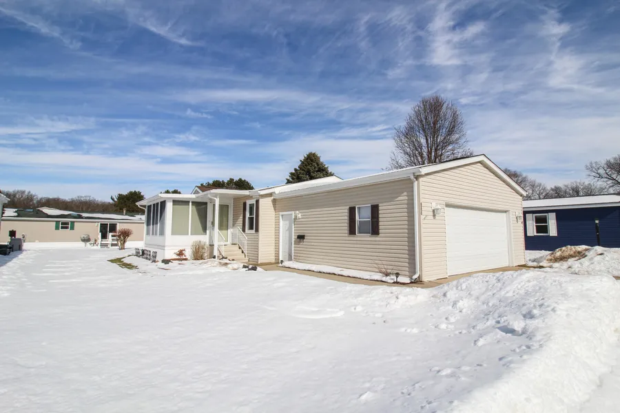 This very clean, affordable 3-bedroom, 2-bath manufactured home in Kalamazoo Township in a 55+ community offers 1,350 finished square feet. There are newer windows, a newer roof, and newer water heater. This home features a functional floor plan with a spacious living area, a generous kitchen and dining space, and a primary suite with a private full bath. Two additional bedrooms and a second full bath provide flexibility for guests, a home office, or family needs. There is also a beautiful 3-season room! Includes generator! Comes with washer and dryer! Plenty of closets.