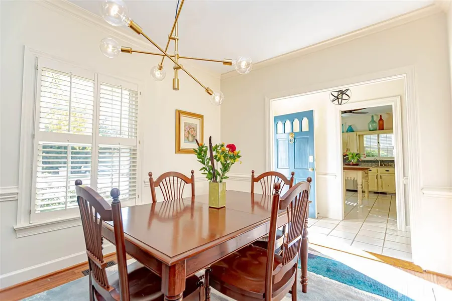 Delightfully decorated end unit townhome with rare first floor owner suite. Freshly painted first floor, Chef's kitchen with lots of counter space, large covered back porch with cute fenced area. You will enjoy the many upgrades throughout. Great storage space - 4 walk in closet areas, storage shed and more. Close to post office, grocery store, library, and many great restaurants. Community offers pool and tennis court. You will not want to miss this one!