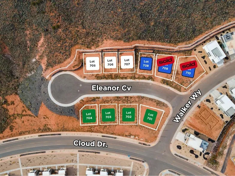 Phase 7 on Eleanor Cove: Features 9 ready to build lots in Black Ridge Cove and 3 step up lots with incredible views up to 3 story plans allowed,3 walk-out basement building lots perfect for dual living space designs and 3 flat lots in Black Ridge Cove. The only Residential Tech Ridge community to allow for bringing your own builder. Adjacent to the famous 333 Steps of Tech Ridge and a part of the Black Ridge Cove Community with access to trails, the incredible clubhouse, pool, pickle ball courts, fitness center AND just minutes the future urban center of St. George. Building plans and elevations subject to approval.
