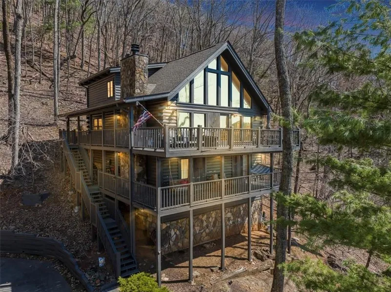 Welcome to your dream mountain escape in prestigious Big Canoe! This 3-bedroom, 3-bath cabin offers privacy, stunning long range mountain views, with a completely reimagined modern-rustic design which is perfect as a personal mountain retreat and/or short-term rental. The gorgeous great room wows with cathedral ceilings, exposed beams, a stone fireplace, and floor-to-ceiling windows framing breathtaking scenery. The primary suite is a tranquil retreat with a spa-like bath with jacuzzi tub. The multiple decks surrounding the home and outdoor spaces invite you to relax, entertain, or stargaze by the firepit. The lower-level living area adds even more with a game room, bunk beds, a second fireplace, and extra lounging areas ideal for the kiddos. A whimsical hideaway nook on the upper level and porch swing off the deck makes this home truly special. Sold fully furnished and turnkey with $50,000+ in upgrades and improvements, this cabin is ready for you to personally enjoy or rent as an income producing property. While the driveway is on the steeper side, it is very maneuverable and becomes fun to drive once you get the hang of it. Big Canoe's world-class amenities include golf, lakes with a marina, hiking trails, pickleball, a Beach Club, fitness center, and more creating a mountain lifestyle like no other. Schedule your private tour today and make this stunning retreat yours!